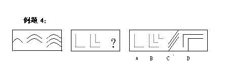 解答:正確答案為B。因?yàn)橹挥蠦能使兩套圖形具有相似性,僅僅元素不同,一個(gè)是實(shí)的曲線,一個(gè)是虛的直線,但兩組圖形中元素的排列規(guī)律完全相同。