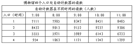 ?、?從早上7:00到11:00通過(guò)入口1進(jìn)入博物館的參觀人數(shù)是: