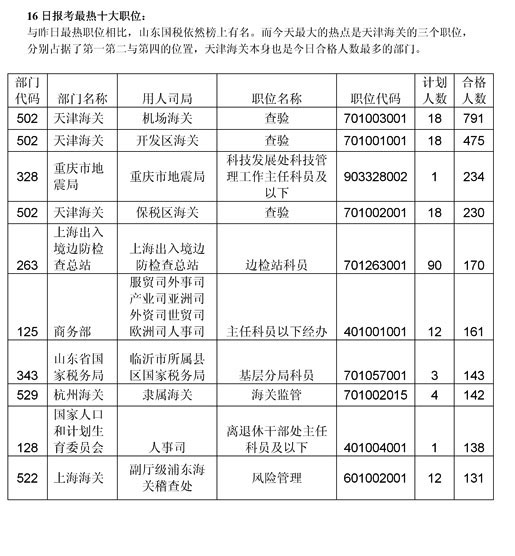 ?國家公務(wù)員數(shù)據(jù)統(tǒng)計:競爭最激烈十大職位