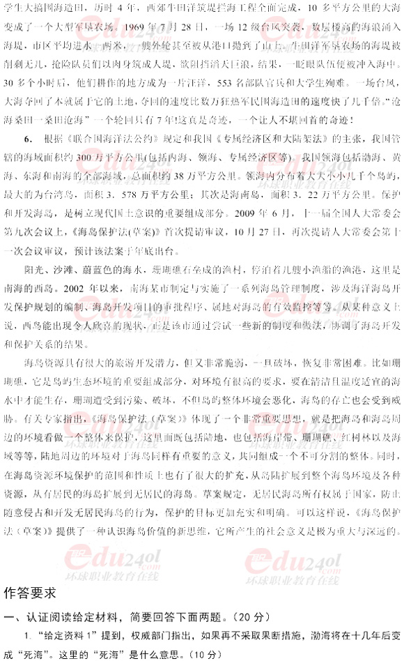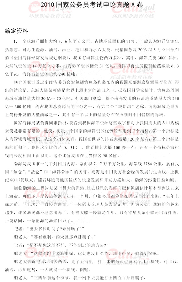 2010年國家公務(wù)員考試申論科目真題(試卷A)