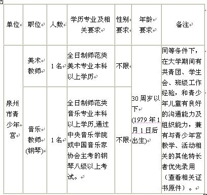 根據(jù)中共泉州市委組織部、市人事局《關(guān)于市屬事業(yè)單位補(bǔ)充工作人員實(shí)行考試考核公開招聘有關(guān)問(wèn)題的通知》精神,共青團(tuán)泉州市委擬采取考試與考核的辦法公開招聘直屬事業(yè)單位泉州市青少年宮工作人員?,F(xiàn)將有關(guān)招考事項(xiàng)公告如下:
