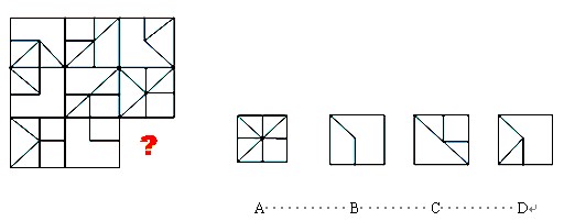 第一種題型:圖形推理。每道題給出一套或兩套圖形,要求應(yīng)試者認真觀察找出圖形排列的規(guī)律,選出符合規(guī)律的一項。