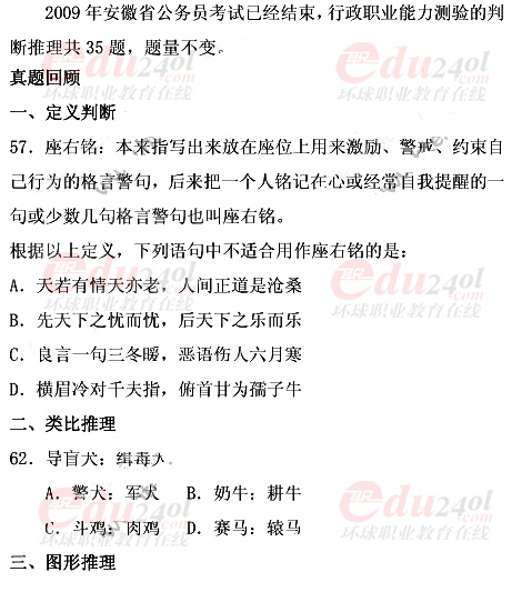安徽2009公務(wù)員考試行測判斷推理真題與解析