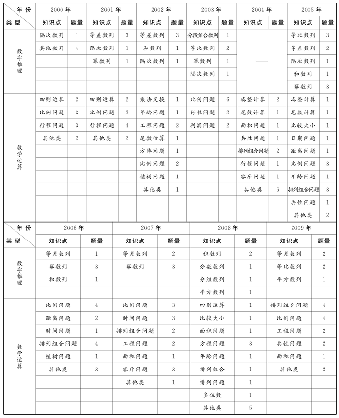 經(jīng)過研究和總結(jié),數(shù)量關(guān)系十年的題型變化如下:
