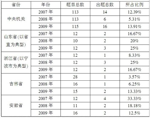 考生們從上面的分析表中不難發(fā)現(xiàn):知識(shí)理解類(lèi)試題在公務(wù)員面試題中所占的比重總體上是比較高的,最高的達(dá)33.33%(安徽省),最低的為3.57%(吉林省)。就一套試卷而言,至少有一道知識(shí)理解類(lèi)試題,有的甚至兩道。