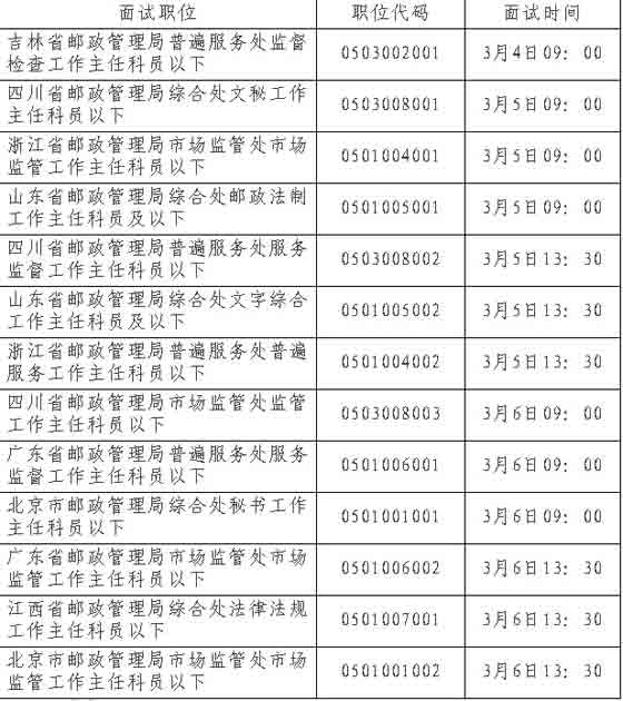 根據(jù)中共中央組織部、人力資源和社會(huì)保障部、國(guó)家公務(wù)員局關(guān)于公務(wù)員考試錄用工作有關(guān)規(guī)定,現(xiàn)將國(guó)家郵政局系統(tǒng)面試有關(guān)事項(xiàng)通知如下: