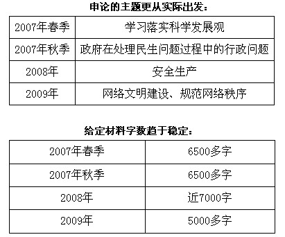 申論科目上,2010天津新大綱幾乎是完全照搬2010國家大綱中關(guān)于副省級以上職位的申論描述,天津公務(wù)員考試出題以國考為標(biāo)桿的趨勢越來越明顯,從近年來天津公務(wù)員申論出題思路中就可以體現(xiàn)。