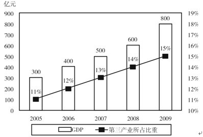 2005—2009年某地區(qū)第三產(chǎn)業(yè)發(fā)展情況