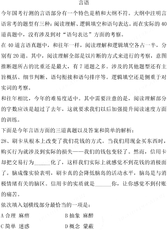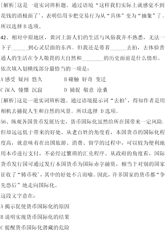 2011國家公務(wù)員考試《行測》言語理解試題答案