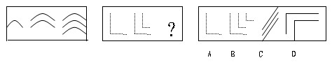 解答:正確答案為B。因?yàn)橹挥蠦能使兩套圖形具有相似性,僅僅元素不同,一個(gè)是實(shí)的曲線,一個(gè)是虛的直線,但兩組圖形中元素的排列規(guī)律完全相同。