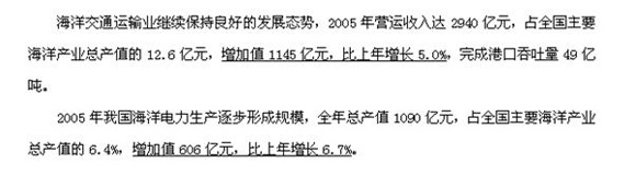 2005年海洋造船完工量首次突破1000萬綜合噸,海洋船舶工業(yè)總產(chǎn)值817億元,海洋船舶工業(yè)增加值176億元,比上年增長11.8%。