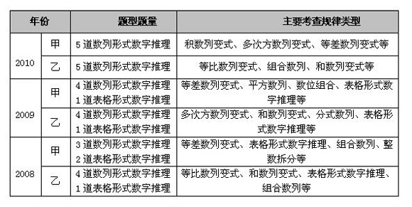 2008-2010年吉林省公務員考試數(shù)字推理基本情況
