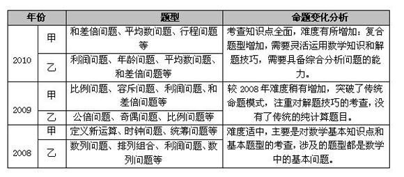 2008-2010年吉林省公務員考試數(shù)學運算基本情況