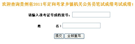 貴州省2011年定向考錄鄉(xiāng)鎮(zhèn)機(jī)關(guān)公務(wù)員筆試成績查詢?nèi)肟?gt;>>