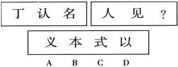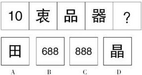 解析:本題目考察求異。考察求同必考察求異;前面一組圖形中第一個與第二個圖形不同元素是:“之”“云”,這兩個元素組合后正好是第三個圖形;后面一組圖形,前面兩個圖形的不同元素是“口”“人”,組合成第三個圖形,因此選B;