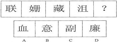 解析:本題目考察漢字的筆畫。前面一組圖形筆畫數(shù)分別是:2、4、6;后面一組圖形筆畫數(shù):2、4、?;因此選擇一個圖形具有6筆畫即可