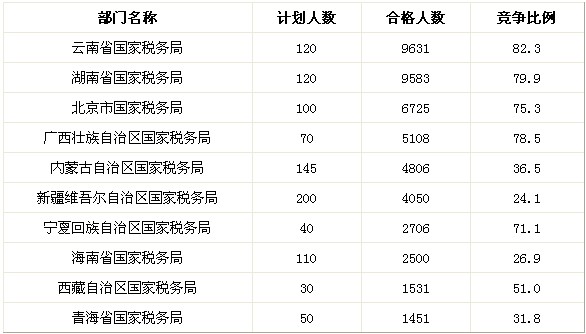 報(bào)考最熱的十大稅務(wù)部門