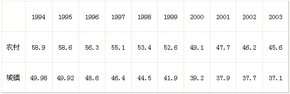 1994年~2003中國城鄉(xiāng)居民家庭恩格爾系數(shù)比較(單位:%)