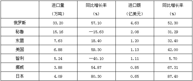 表1 主要進(jìn)口來源地(進(jìn)口額前7位)