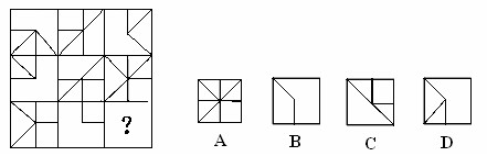 (解答:每行前兩個圖形疊加后,不同的部分就是第三個圖形。正確答案是D。)