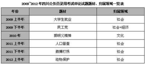 從上表我們可以看出,近四年來(lái)四川申論考試主要考查社會(huì)類和經(jīng)濟(jì)類主題,以社會(huì)類主題為主。但考生在復(fù)習(xí)時(shí),在側(cè)重社會(huì)和經(jīng)濟(jì)領(lǐng)域的同時(shí),對(duì)政治、文化、生態(tài)領(lǐng)域都要有所了解,從而保證復(fù)習(xí)的全面性,做到有備無(wú)患。