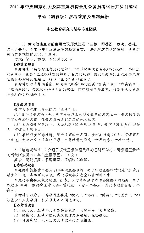 2011年國家公務(wù)員考試申論真題(副省級以上) 答案解析
