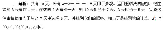 【例題4】 某展覽館計劃4月上旬接待5個單位來參觀,其中2個單位人較多,分別連續(xù)參觀3天和2天,其他單位只參觀1天,且每天最多只接待1個單位。問:參觀的時間安排共( )種。