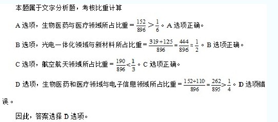 D.生物醫(yī)藥和醫(yī)療器械領(lǐng)域與電子信息領(lǐng)域增加值之和不剄全省高新技術(shù)產(chǎn)業(yè)增加值的1/4