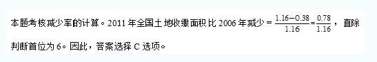 123、與2006年相比,2011年全國(guó)收繳土地面積約減少了( )。