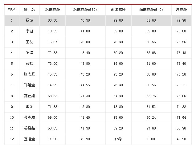 2012黔西南州政府辦公室公開招考文秘人員總成績