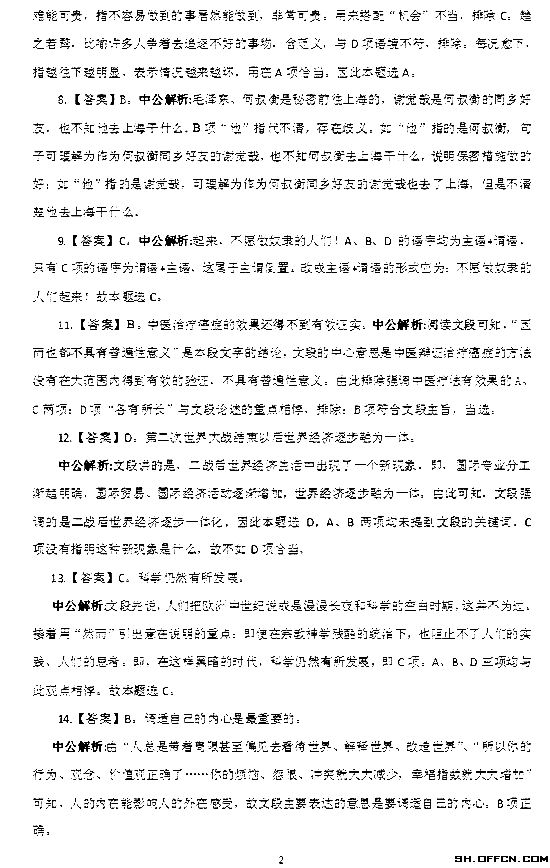 2013年上海市公務(wù)員考試《行測》答案及解析(B類)