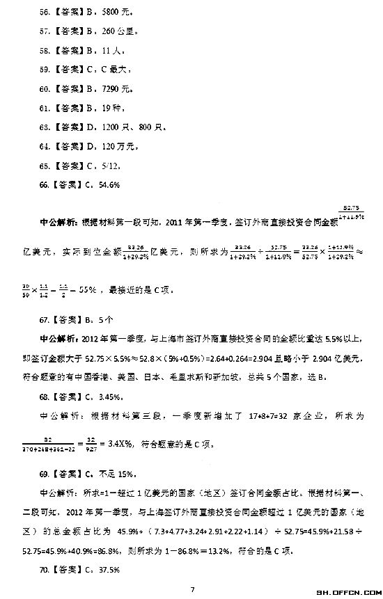 2013年上海市公務(wù)員考試《行測》答案及解析(A類)