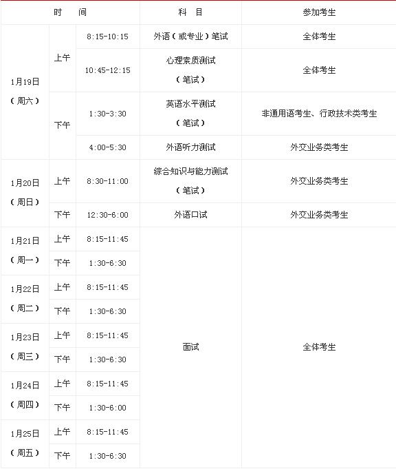 2013年國家公務(wù)員考試面試外交部公告