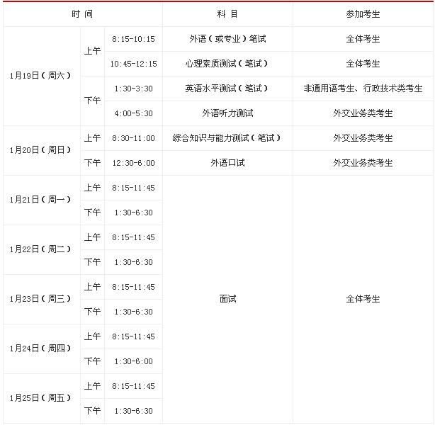 1月9日悉:外交部錄用2013年公務員專業(yè)科目考試和面試定于2013年1月19日(周六)至25日(周五)在北京集中舉行,期間全體考生分批進行體檢。現(xiàn)將有關事項通知如下: