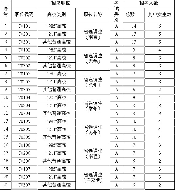 摘要 【環(huán)球網(wǎng)?!繃夜珓?wù)員考試頻道2013年江蘇省選調(diào)生職位簡介表