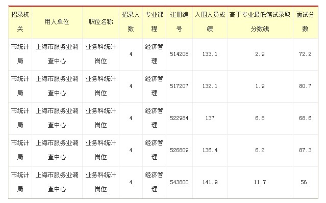 2012年上海市公務(wù)員考試:統(tǒng)計局分?jǐn)?shù)線