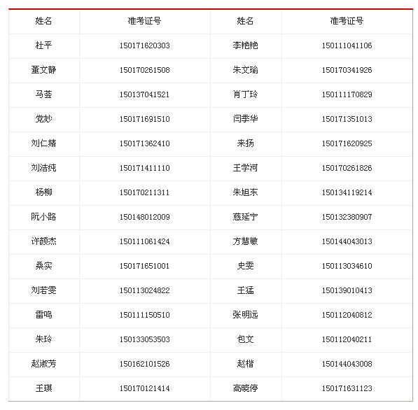 一、參加考試人員名單