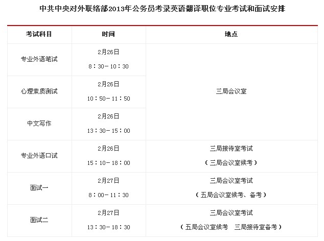 2013國考英語專業(yè)考試和面試:安排中共中央對外聯(lián)絡(luò)部