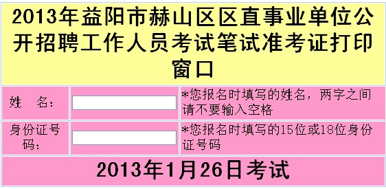 益陽(yáng)市赫山區(qū)2013年事業(yè)單位招聘準(zhǔn)考證打印入口