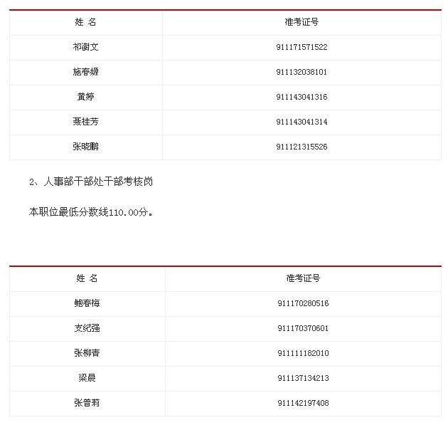 公共科目筆試成績(jī)前5名的考生中,1人因自身原因自愿放棄面試資格,按分?jǐn)?shù)從高到低順序遞補(bǔ)1名考生進(jìn)入面試名單。本職位最低分?jǐn)?shù)線112.20分。