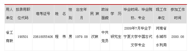 2012年河南省工商業(yè)聯(lián)合會擬錄用名單公示