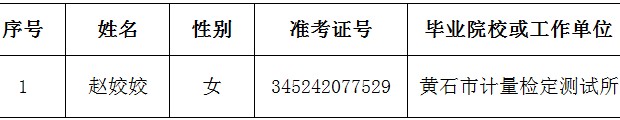 根據(jù)中共中央組織部、人力資源和社會(huì)保障部、國(guó)家公務(wù)員局關(guān)于中央機(jī)關(guān)及其直屬機(jī)構(gòu)2012年度考試錄用公務(wù)員有關(guān)工作要求,經(jīng)過(guò)筆試、面試、體檢、考察等程序,湖北省國(guó)家稅務(wù)局系統(tǒng)擬補(bǔ)錄趙姣姣同志為公務(wù)員,現(xiàn)將補(bǔ)錄用人員名單予以公示(考生暫緩錄用的原因是體檢時(shí)懷孕,暫停了部分體檢項(xiàng)目)。
