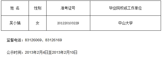 2012年廣州市擬錄用公務(wù)員公示名單(第十三批)