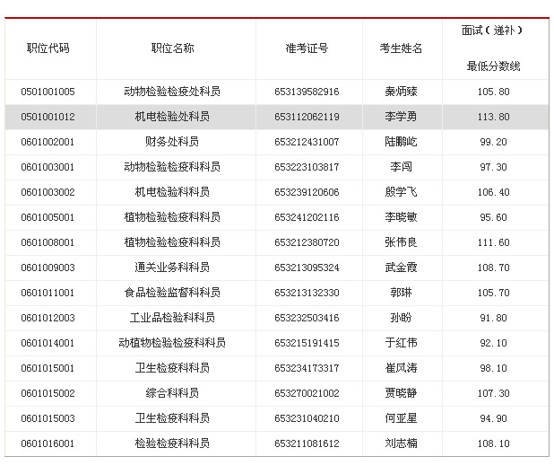 因部分進入我局面試名單人員自愿放棄面試資格,根據(jù)公務員招考有關規(guī)定,按照公共科目筆試成績從高到低的順序,現(xiàn)將我局2013年度公務員考錄面試遞補人員名單公告如下:
