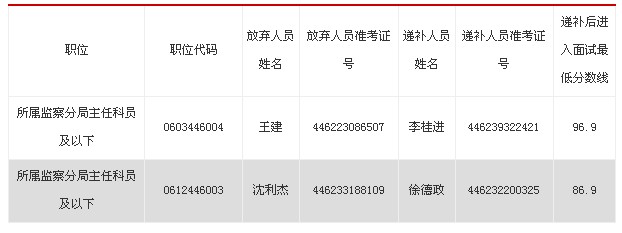 因部分進(jìn)入面試名單人員自愿放棄面試資格,根據(jù)公務(wù)員考錄有關(guān)規(guī)定,擬進(jìn)行遞補,現(xiàn)將考錄面試遞補人員名單公告如下: