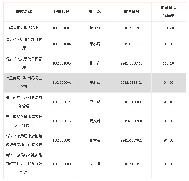 因部分考生自愿放棄面試資格,根據(jù)公務(wù)員考試錄用工作有關(guān)規(guī)定,在公共科目筆試合格考生中按照筆試成績從高到順序進(jìn)行遞補(bǔ)。請遞補(bǔ)人員按照《水利部海河水利委員會2013年考試錄用公務(wù)員面試公告》相關(guān)要求做好面試準(zhǔn)備工作。