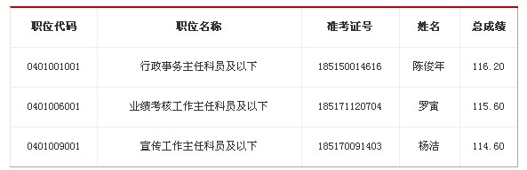 我委部分進入面試人選不能參加面試,根據(jù)有關(guān)規(guī)定,按照有關(guān)職位考生公共科目筆試總成績順序,遞補以下考生為面試人選: