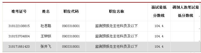面試人員、筆試最低分?jǐn)?shù)一覽表