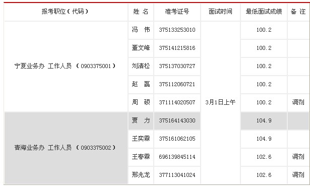 二、對已通過公共科目考試及參加調(diào)劑審核通過的考生,確定參加面試人員名單如下: