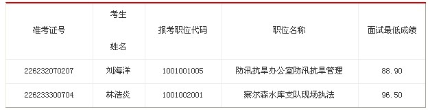 因部分考生放棄面試資格,根據(jù)中組部、人力資源社會保障部、國家公務(wù)員局關(guān)于公務(wù)員考錄遞補(bǔ)工作的有關(guān)規(guī)定,在報考該職位公共科目筆試成績合格的考生中,按照考生成績從高到低遞補(bǔ)的原則,遞補(bǔ)以下2名考生參加面試: